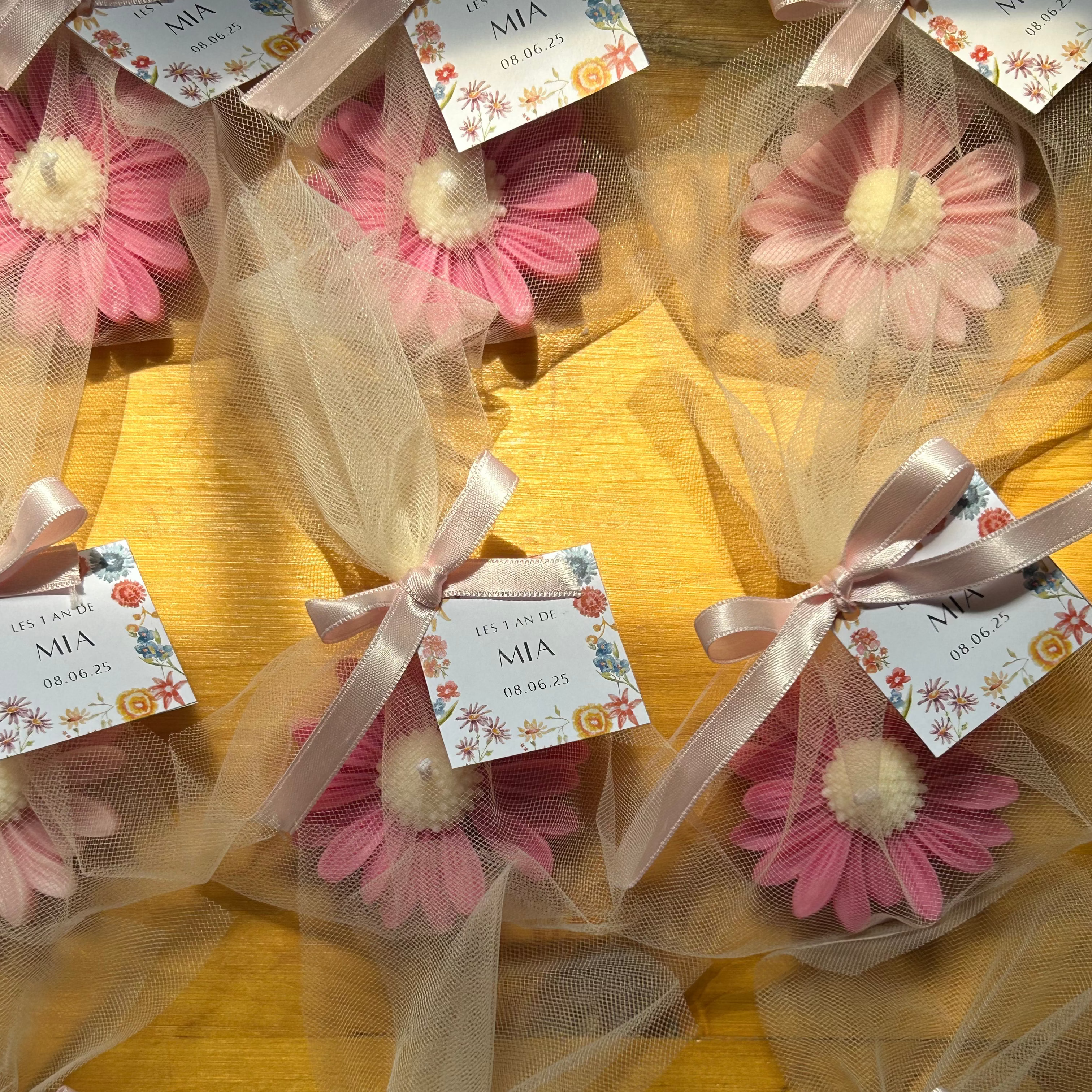 Une bougie personnalisée pour célébrer ce moment précieux. Douce, symbolique et délicate, elle devient un souvenir à garder et à offrir.